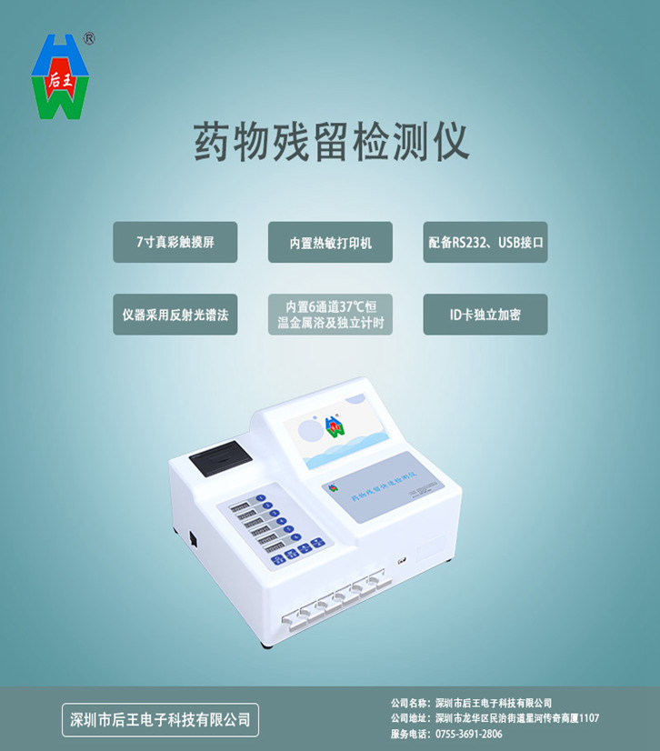 農(nóng)業(yè)監(jiān)督檢測方案深圳市后王電子科技有限公司專業(yè)生產(chǎn)食品安全檢測儀器、提供全套的農(nóng)業(yè)監(jiān)督檢測方案以及實(shí)驗室整體規(guī)劃,實(shí)驗室體系建立。 檢測范圍:食品色素、病害肉、重金屬、蛋白質(zhì)、粗蛋白、茶多酚、甜蜜素、安賽蜜、吊白塊、二氧化硫、二氧化氯、過氧化氫(雙氧水)、過氧化值、食用油酸價以及其他食品安全有毒有害物質(zhì)項目進(jìn)行快速檢測。